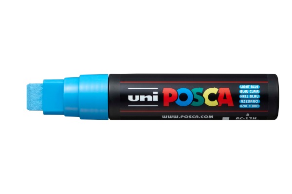 POSCA, der Wasserfarben Marker für eine unlimitierte Anwendung auf allen Oberflächen. Seine acrylähnliche Formel ist opak und deckend und trocknet schnell. Die Farbe ist auf Wasserbasis und somit geruchlos. POSCA haftet dauerhaft auf porösen Oberflächen, lässt sich von glatten Oberflächen abwischen und dringt nicht durch das Papier. Lassen Sie Ihrer Kreativität freien Lauf. Ob beim Basteln, bei der Home-Deko oder beim personalisieren von Sportgeräten, Kleider oder Accessoires ist der POSCA Marker das ideale Werkzeug. Seien Sie kreativ - auf jeder beliebigen Unterlage.