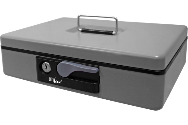 Die hochwertige Stahlkassette von BüroLine hat ein Zylinderschloss, das Ihnen hohe Sicherheit garantiert und zwei dazugehörige Schlüssel.