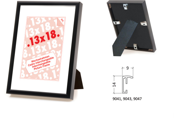 • Back-Loader-System: Metallklammern freisetzen, Rückwand wegnehmen und beliebiges Bild einlegen