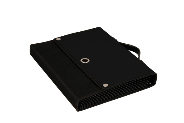 Das «3-Way Flip File» für das mobile Büro lässt sich als Fächermappe, Wandablage oder trendige Aktentasche benutzen. Die Mappe beinhaltet 6 Fächer für A4-Dokumente. Integrierter Metallring für Aufhängung an Tür oder Wand. Mit praktischem Traggriff aus PP. Beschriftbare Klebeetiketten zur Bezeichnung des Inhalts. Mit 4 kleinen Taschen für Notizen oder Visitenkarten. Hergestellt aus strapazierfähigem Textil (Nylon), Schaumstoff und PP-Material mit textilverstärkter Kanten-Umrandung.