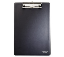 Aus Folie mit Kartonverstärkung. Sicherer Halt der Unterlagen durch rutschhemmende Elastikecken und starker Federklemme. Mit Tasche zum zusätzlichen Arretieren des Blockrückens und herausziehbarer Aufhängeöse.