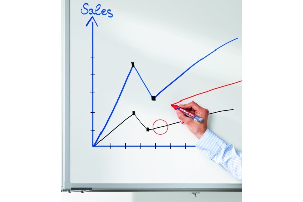 Zum Schreiben und Markieren auf Whiteboards. Trocken abwischbar von fast allen geschlossenen Oberflächen wie Emaille, Glas, Melamin. Cap-off-Tusche - daher vorübergehend offen lagerfähig ohne einzutrocknen.