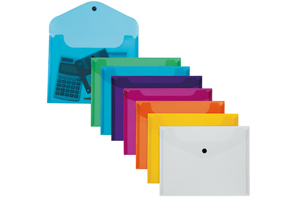 Porte-documents idéal pour ranger tous types de documents jusqu'au format A5. La pochette est extrêmement pratique pour une utilisation quotidienne. Le bouton noir permet de le tenir fermé et de ranger vos documents en toute sécurité. Fabriqué en matériau semi-transparent résistant aux rayures. Mettez de la couleur dans votre vie de tous les jours!