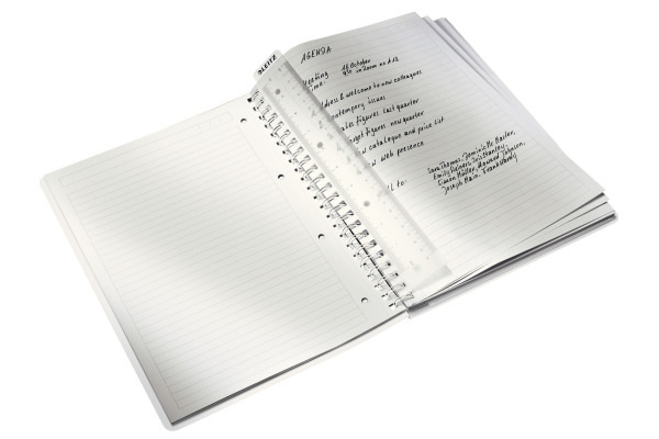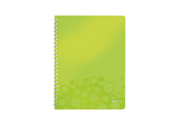 Hochwertiger spiralgebundener Collegeblock mit perforierten und gelochten Seiten in leuchtenden WOW Farben. Ablagemöglichkeit für lose Unterlagen.