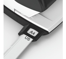 • Klar erkennbare Formatangaben und sicher einrastende Anschlagschiene sorgen für eine saubere und bündige Papierablage