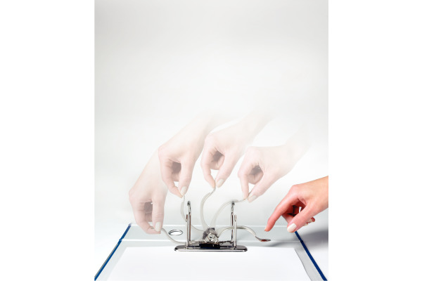 Dieses Präsentationsringbuch von Leitz ist mit zwei transparenten Aussentaschen auf Vorderdeckel und Rücken ausgerüstet.
