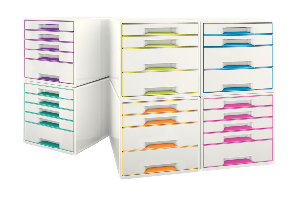 LEITZ Schubladenbox WOW Cube A4 weiss/eisblau, 5 Schubladen, 52142051