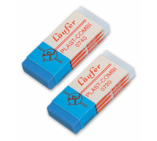 Die Kombination des Allround-Talents Läufer Plast für Blei- und Farbstifte mit dem blauen Spezialradierer für Kugel- und Faserschreiber, Tinte und Tusche.