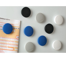 Aimant noyau ferrite, face arrière spécialement revêtue pour éviter de rayer les tableaux, colle de bonne qualité garantissant l'adhésion solide du capuchon en plastique recouvrant l'aimant.