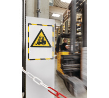 2-farbiger Magnetrahmen entsprechend der ISO 3864-4 für Sicherheits-Kennzeichnungen + Anweisungen. Zum Einlegen von Warnhinweisen für Brandschutz + Maschineneinsatz, Erste Hilfe, Gefahrstoffe, Flucht- und Rettungswege etc. Magnethaftend auf allen eisenhaltigen Oberflächen wie Whiteboards, Maschinen, Metallschränken etc. Schützt Dokumente + Informationen und verleiht ihnen einen auffälligen Rahmen.