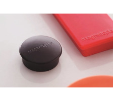 Magnet mit Vollkern-Ferrit-Ausstattung. Mit verbreitertem Rand, zur einfachen Entnahme des Magneten vom Untergrund. Spezialbeschichtete Unterseite verhindert das Zerkratzen von Tafeln. Ein hochwertiger Kleber garantiert den festen Verbund mit der Kunststoffkappe des Magneten.