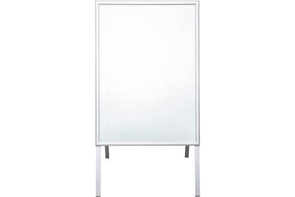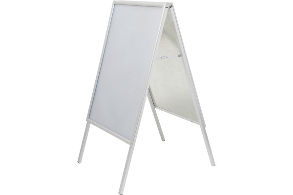 Doppelseitiger, wetterbeständiger Kundenstopper, ideal für die professionelle Präsentation von Informationen, Plakaten, Postern im Innen- und Aussenbereich. Einfaches Wechseln bzw. Einlegen des Inhalts von vorne: Klapprahmen aufklappen, Schutzfolie entnehmen, Inhalt und Schutzfolie einlegen, Klapprahmen zuklappen - fertig. Die UV-stabilisierte Anti-Reflexionsfolie schützt den Inhalt vor dem Ausbleichen. Der Rahmen ist aus silbereloxiertem Aluminiumprofil (32 mm). Die Rückwände sind aus rostfreiem, feuerverzinktem Metall und sorgen durch ihr Gewicht für eine hohe Standfestigkeit.