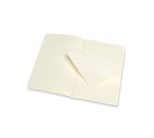 Le carnet Volant avec couverture noire souple est proposé en set de 2. Chaque set de carnets à pages blanches est fabriqué à partir de papier sans chlore et contient l'histoire de Moleskine.
