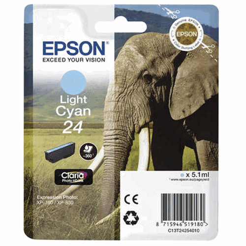 Original Epson Tintenpatrone Nr. 24 light cyan, 5.1ml, 360 Seiten