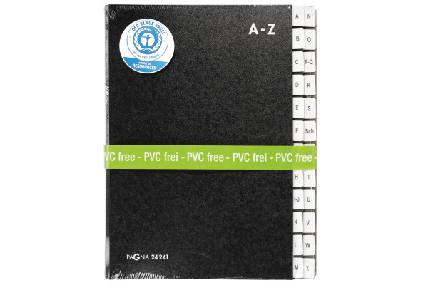 Trieur pour documents au format A4, intercalaires 44, série Classic, noir, en carton résistant (RC), dos extensible à soufflets, pour une grande capacité de classement, intérieur en papier cartonné noir avec 3 points de perforation, onglets en polypropylène blanc imprimés 1-31 et 1-12 janv-déc (version en allemand), label Ange bleu, en PP durable, préhension facile, garanti 5 ans