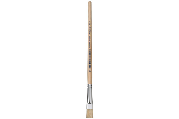 Die Pinsel Sorte 613 F besitzen eine kurze Quaste aus reinen Schweinsborsten. Die Spitze ist mit einer Aluminiumzwinge nahtlos am naturbelassenen, stumpfen Holzstiel befestigt ist.