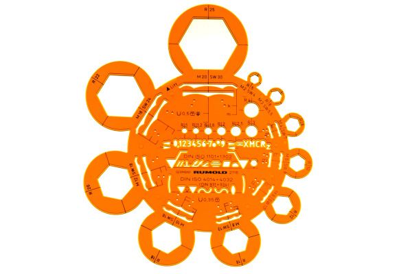 Die Abrundungs- und Muttern-Schablone von RUMOLD verfügt über viele verschiedene Formen und Symbole, so dass Sie für jeden Fall die richtige Lösung finden und Ihre Arbeit genau und schnell erledigen können! Die Tuschekante verhindert das Verlaufen der Tusche unter das Zeichenhilfsmittel