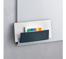 Ablagefach für Glas-Magnetboards. Das Ablagefach wird mithilfe des Clips (im Lieferumfang enthalten) am Board fixiert. Es kann variabel an den Seiten des Boards angebracht werden und ist somit immer an der richtigen Stelle griffbereit. Puristisches Design mit spannenden Matt-Glanz-Effekten. Zur Ablage von Moderationskarten, Briefen, Karten, Haftmarkern und anderen Utensilien wie Schlüssel etc. Geeignet für alle handelsüblichen Glasboards (mit einer Stärke von 3-5 mm, ausgenommen Glas-Magnetboard artverum® LED light). Die Belastbarkeit des Ablagefachs liegt bei 500 g.