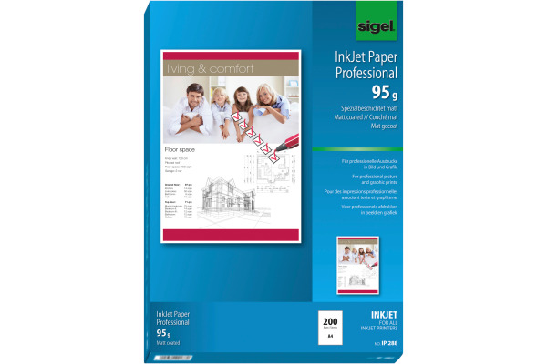 SIGEL InkJet Fotopapier A4 95g,matt, weiss 200 Blatt, IP288