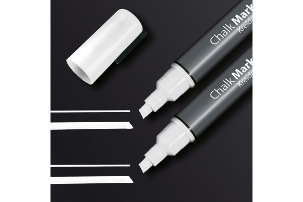Die Kreidemarker mit besonders hoher Deckkraft sind für die Anwendung auf glattem Glas und fast allen geschlossenen Oberflächen geeignet. Die Flüssigkreide auf Wasserbasis kann trocken und feucht abgewischt werden.