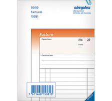 Les factures SIMPLEX se constituent de feuillets orange doublés d’une copie blanche.