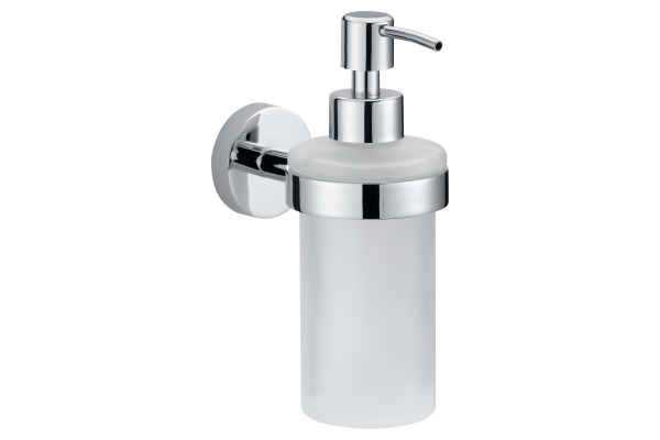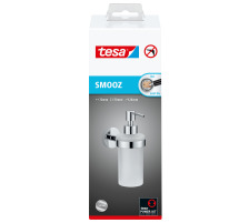 Grâce à sa finition chromée brillante et son réservoir en verre dépoli, ce distributeur de savon tesa® Smooz apportera une touche élégante et intemporelle à votre salle de bain. Il peut contenir 200 mL et peut être rempli de nouveau facilement. * Inutile de sortir la boîte à outils : tout est inclus dans le kit. La colle doit durcir pendant 12 heures pour une efficacité optimale. Vos surfaces sont intactes. Cet accessoire peut être retiré facilement sans laisser de traces et repositionné grâce à un nouvel adaptateur BK20.