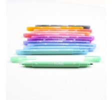 Fasermaler mit zwei Spitzen für unterschiedlich breite Linien. Breite Rundspitze (ca. 0.8 mm) für fette Linien oder zum Ausmalen. Extrafeine Spitze (ca. 0.3 mm) für detaillierte, präzise Linien oder zum Schreiben.