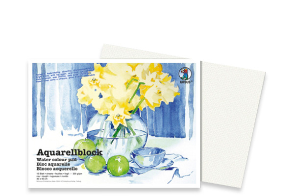 Les blocs aquarelle blancs d’URSUS sans acide contiennent des feuilles de papier chiffon. Les blocs protègent vos œuvres contre le vieillissement.